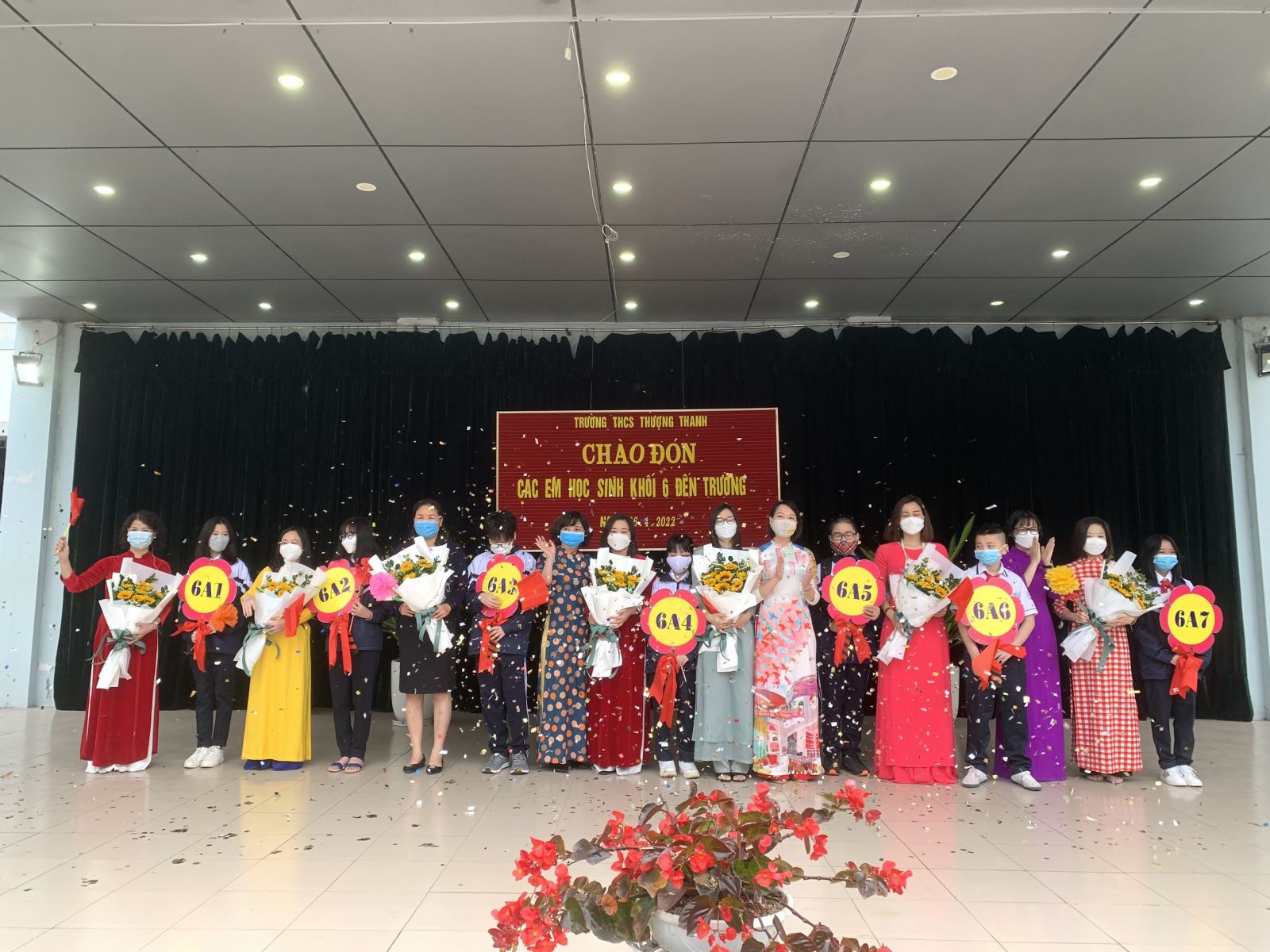 Năm học này với hoàn cảnh dịch bệnh covid-19, các bạn học sinh khối 6 trường THCS Thượng Thanh cũng được các thầy cô giáo và anh chị đón chào bằng một cách thật đặc biệt. Ngay từ sáng ngày 6/4, các thầy cô đã có mặt thật sớm, phân luồng, đo nhiệt độ, sát khuẩn tay... và hướng dẫn các em học sinh tập trung tại sân trường. Tại đây, các em học sinh được đón nhận những tình cảm nồng ấm của các thầy cô giáo, được nhận những bông hoa tươi thắm, những lá cờ rực rỡ và hơn hết, giờ đây các con đã chính thức được đến trường học trực tiếp sau một thời gian dài học online.