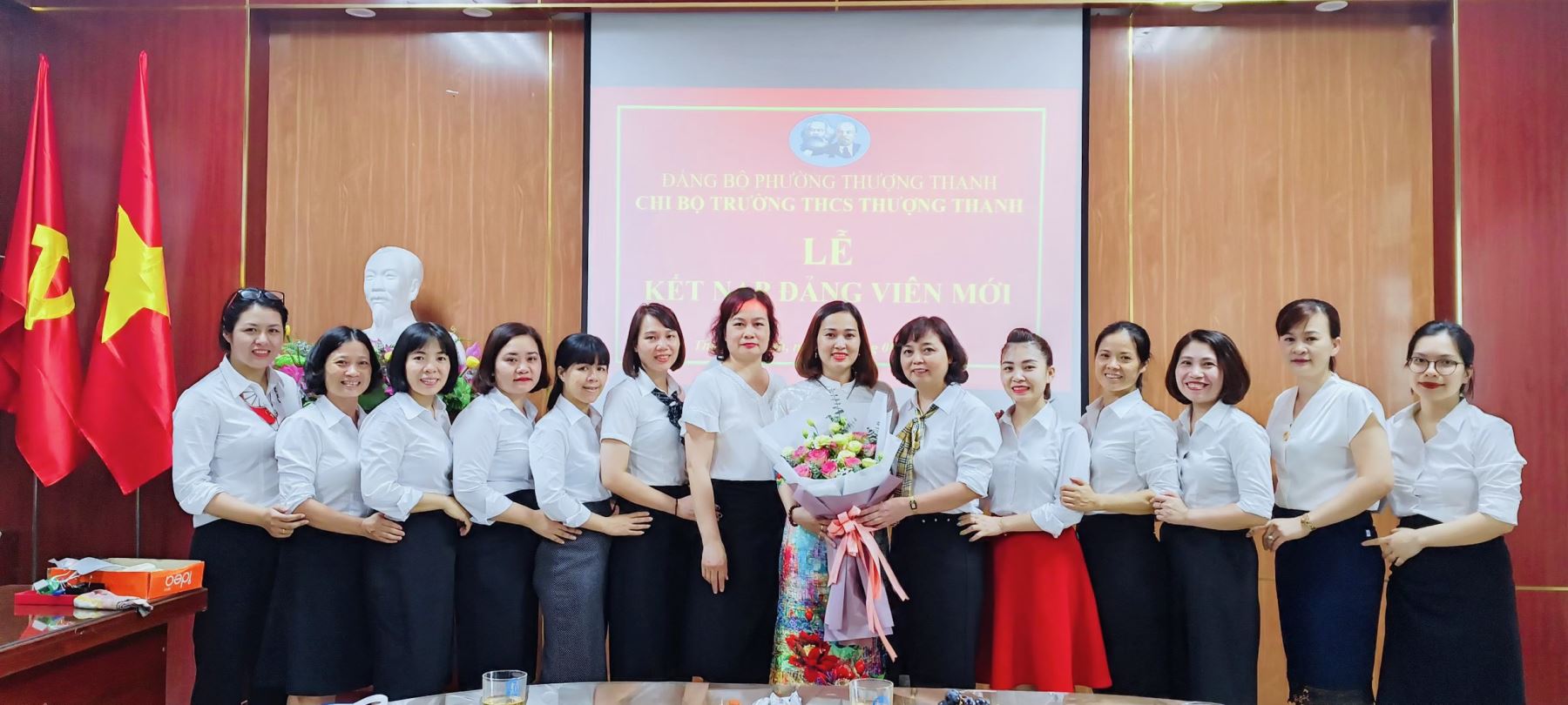 Căn cứ Quyết định số 845-QĐ/QU ngày 16/05/2022 của Quận ủy Long Biên về việc kết nạp đảng viên, thực hiện Nghị quyết Đại hội Chi bộ về công tác xây dựng và phát triển Đảng, chiều ngày 16/06/2022 Chi bộ trường THCS Thượng Thanh long trọng tổ chức Lễ kết nạp Đảng viên đối với quần chúng ưu tú Vũ Thị Hằng theo đúng trình tự Điều lệ Đảng.