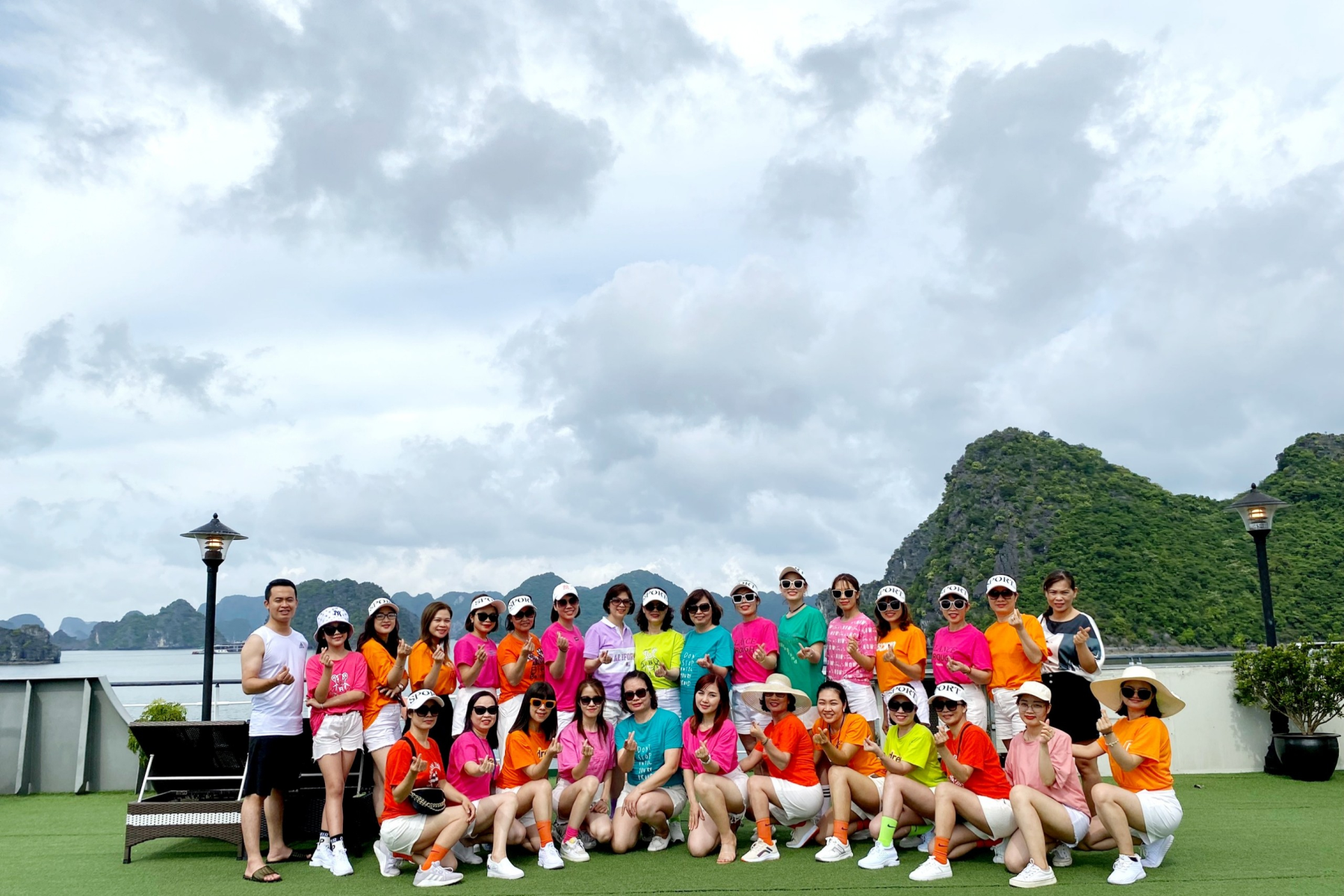Tới nơi, đoàn lên du thuyền sang trọng 5 sao, nhận phòng, nghỉ ngơi, khám phá tàu cũng như cảnh đẹp xung quanh khi tàu di chuyển và lưu lại những khoảnh khắc tuyệt đẹp này. Các thành viên trong đoàn đã có những trải nghiệm tuyệt vời trên du thuyền trong ngày đầu tiên.