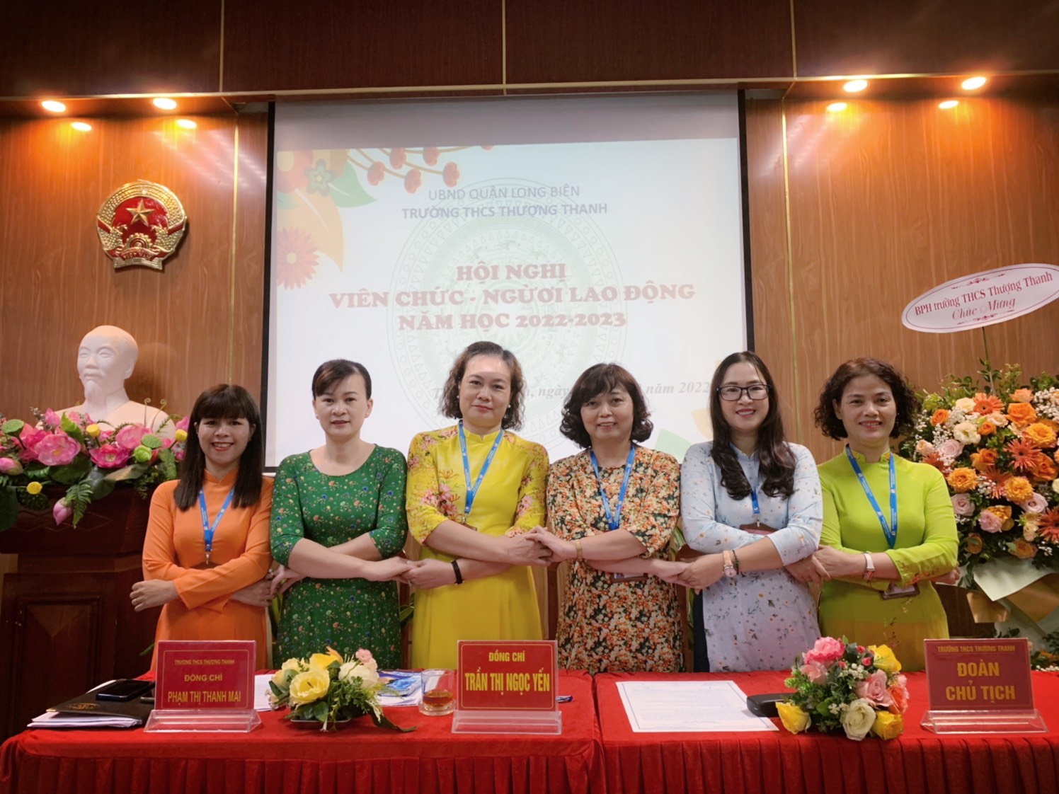 Thực hiện theo Hướng dẫn số 07/HD- LĐLĐ ngày 15/08/2022 của Liên đoàn Lao động quận Long Biên về việc hướng dẫn tổ chức Hội nghị Cán bộ, công chức, viên chức và Hội nghị người lao động năm 2022, chiều ngày 7/10/2022, được sự đồng ý của Liên đoàn Lao động quận và Chi bộ Trường THCS Thượng Thanh, Thủ trưởng đơn vị và công đoàn Trường THCS Thượng Thanh tổ chức hội nghị viên chức năm học 2022-2023 nhằm kiểm điểm Nghị quyết đề ra trong năm học 2021 – 2022, xây dựng và bàn biện pháp thực hiện kế hoạch năm học 2022 - 2023.