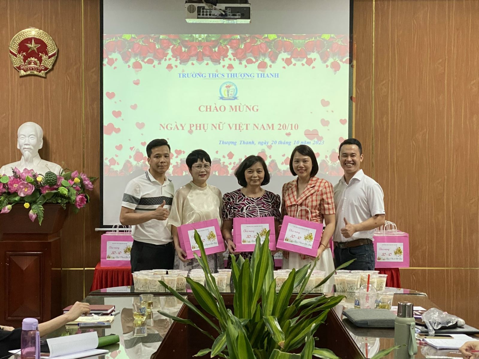 Hoà trong không khí kỉ niệm ngày Phụ nữ Việt Nam, Ban giám hiệu và Ban chấp hành công đoàn trường THCS Thượng Thanh đã tổ chức buổi gặp mặt trang trọng, thân mật giữa các cán bộ, giáo viên và nhân viên nhà trường. Tại buổi gặp gỡ, đồng chí Đặng Quang Thắng thay mặt phái nam trong trường gửi lời tri ân và tặng những món quà ý nghĩa tới các nữ đồng nghiệp. Cũng trong dịp này, Công đoàn nhà trường đã gửi tặng những món quà đầy tình yêu thương tới các chị em.