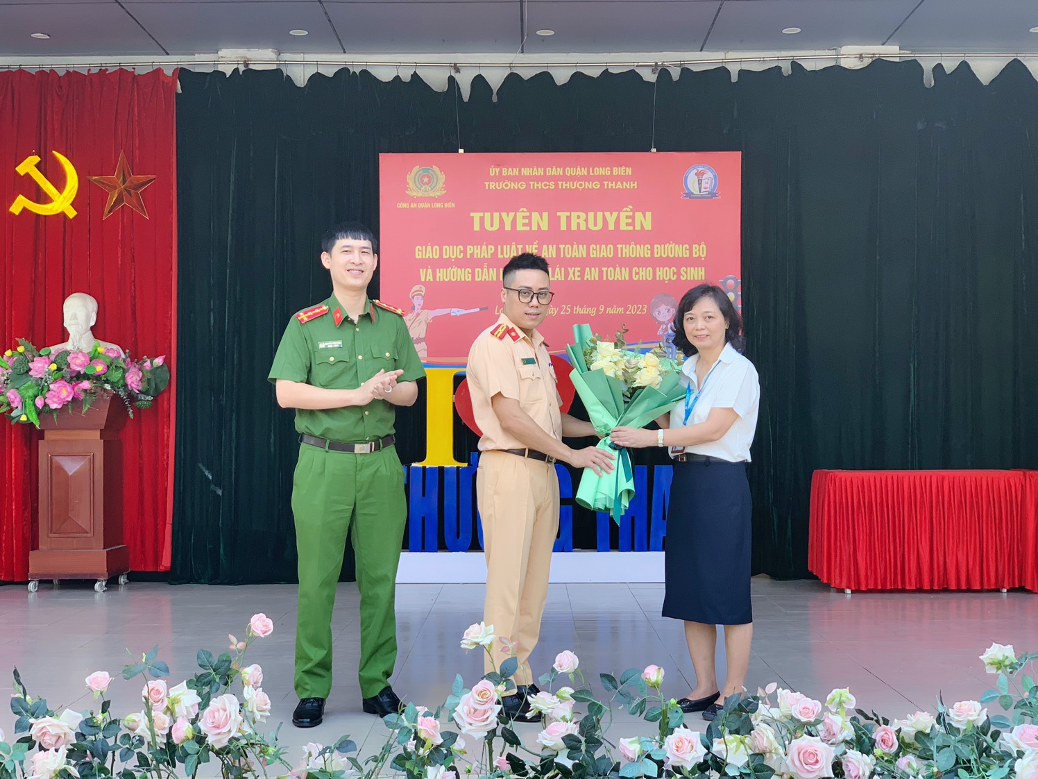Nhằm bồi dưỡng, nâng cao kiến thức về an toàn giao thông cho đội ngũ Cán bộ, giáo viên, nhân viên và học sinh, sáng nay, ngày 25/09/2023, trường THCS Thượng Thanh tổ chức chuyên đề tuyên truyền giáo dục pháp luật về an toàn giao thông đường bộ và hướng dẫn kỹ năng lái xe an toàn cho học sinh. Buổi tập huấn chuyên đề được hướng dẫn bởi Thiếu tá Nguyễn Hoàng Anh, Đại úy Nguyễn Tiến Dũng – Phòng cảnh sát giao thông trật tự - Công an Quận Long Biên và sự tham gia của cán bộ, giáo viên, nhân viên và học sinh nhà trường.
