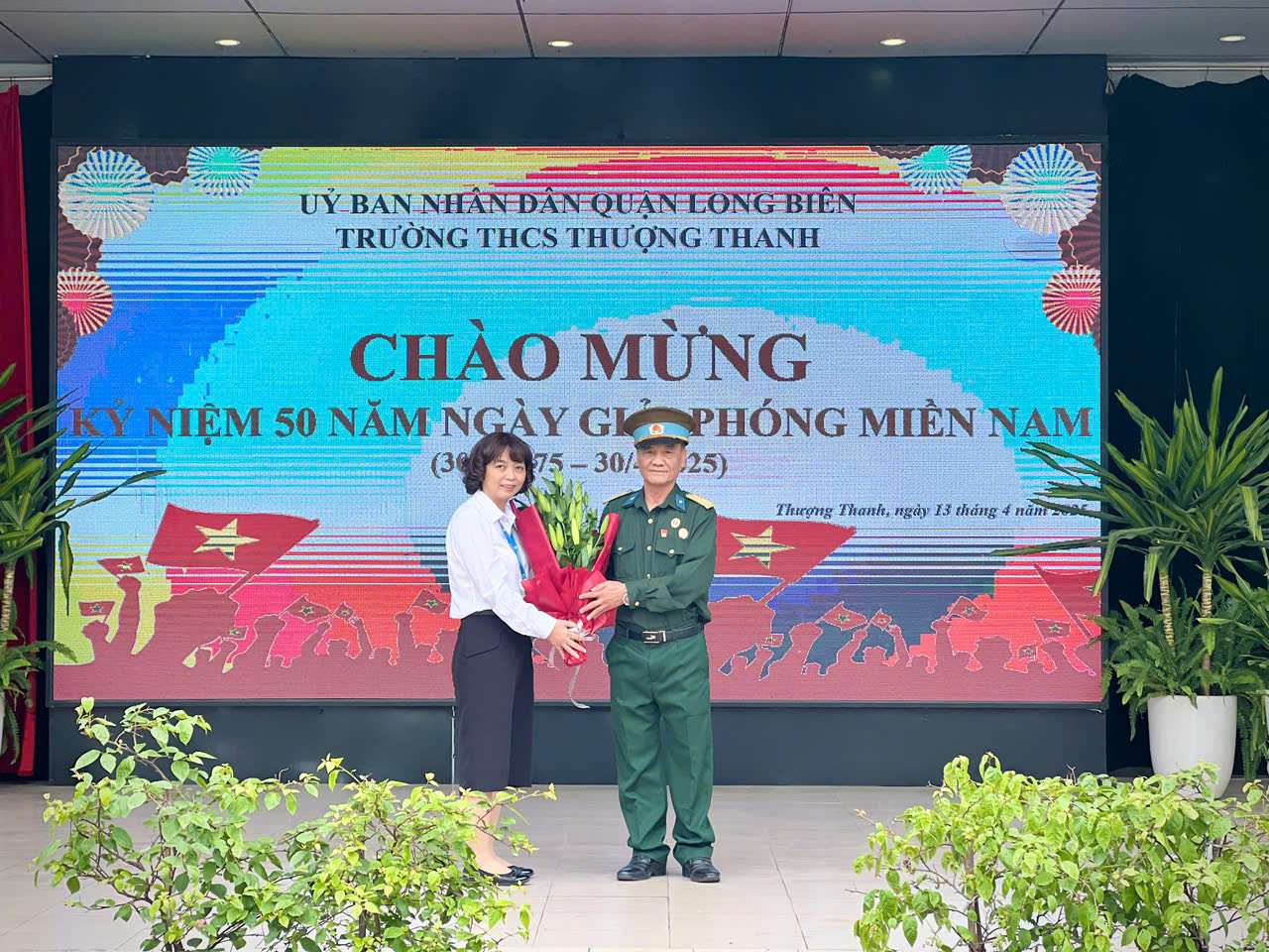Nhân dịp hướng tới kỷ niệm 50 năm ngày Giải phóng miền Nam, thống nhất đất nước (30/4/1975 – 30/4/2025), nhà trường vinh dự được đón tiếp đại úy Trần Văn Bài- Ủy viên hội cựu chiến binh phường Thượng Thanh– nhân chứng lịch sử sống từng tham gia chiến dịch Hồ Chí Minh. Những câu chuyện bác chia sẻ giản dị nhưng xúc động đã giúp học sinh cảm nhận sâu sắc hơn giá trị của hòa bình, hiểu rằng mỗi bước đi hôm nay đều được đánh đổi bằng máu xương của thế hệ đi trước. Cuộc gặp gỡ như một bài học lịch sử không sách vở nào có thể truyền tải đủ, khiến cả sân trường lắng lại trong sự biết ơn và tự hào.