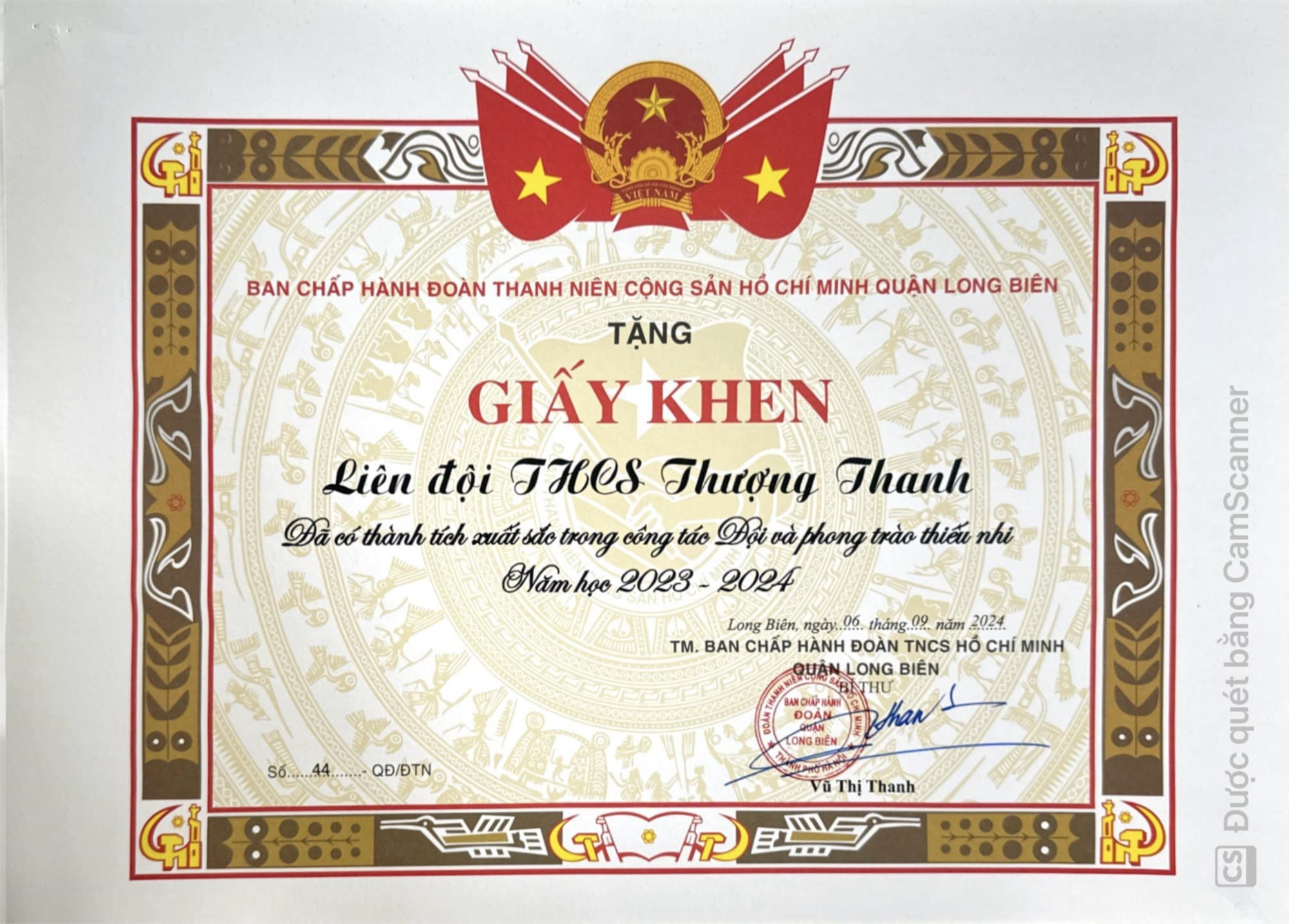 ✅ Lê Quốc Việt - Chi đội phó chi đội 9A2 - Liên đội trưởng của trường, đã được Quận đoàn trao tặng giấy khen "Đã có thành tích xuất sắc trong công tác Đội và phong trào thiếu nhi năm học 2023-2024."