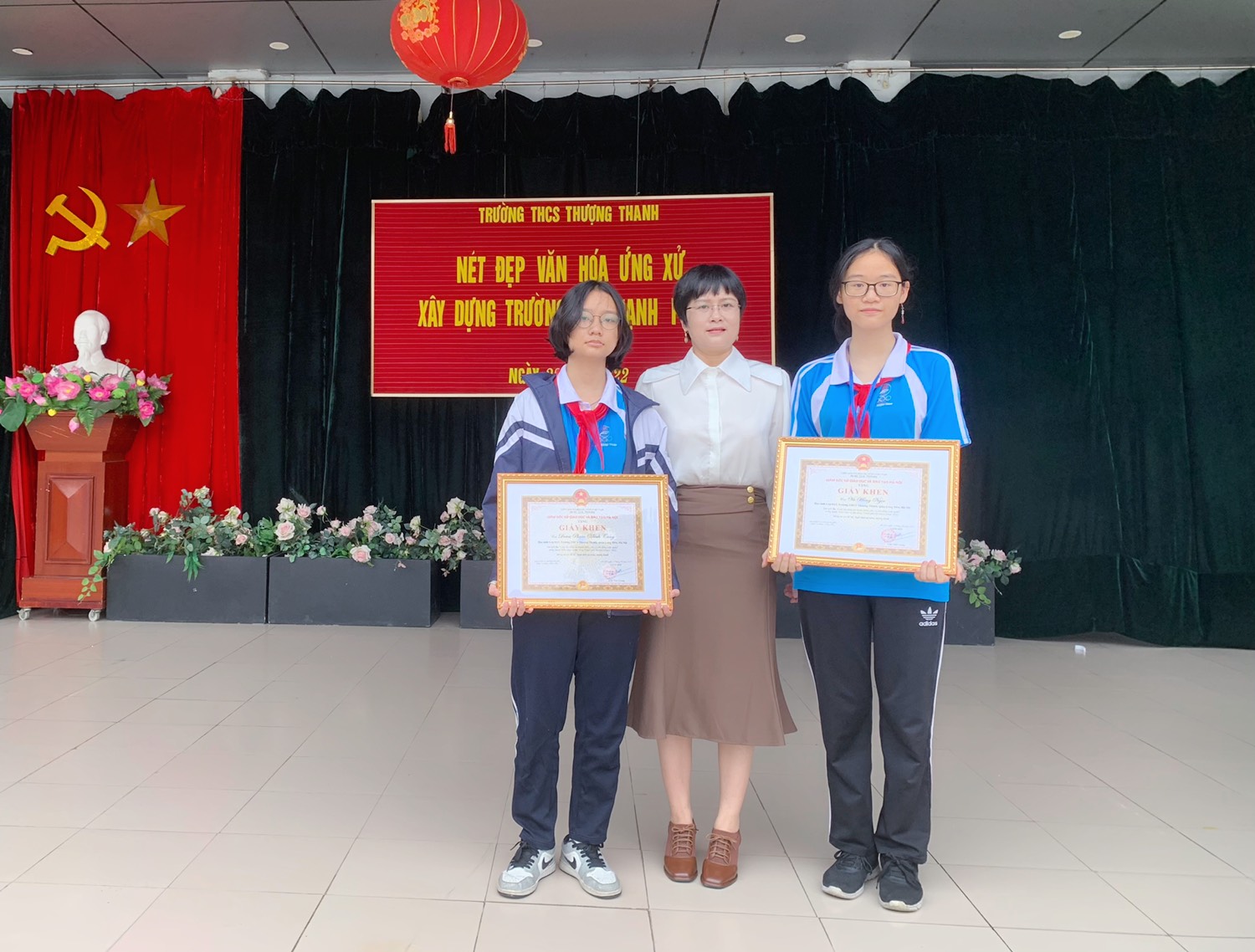 Vào sáng ngày 28/11, Trường THCS Thượng Thanh đã tổ chức vinh danh học sinh đạt giải trong Cuộc thi sáng tạo dành cho thanh thiếu niên, nhi đồng toàn quốc lần thứ 18 năm 2022 cho 2 học sinh đạt giải.