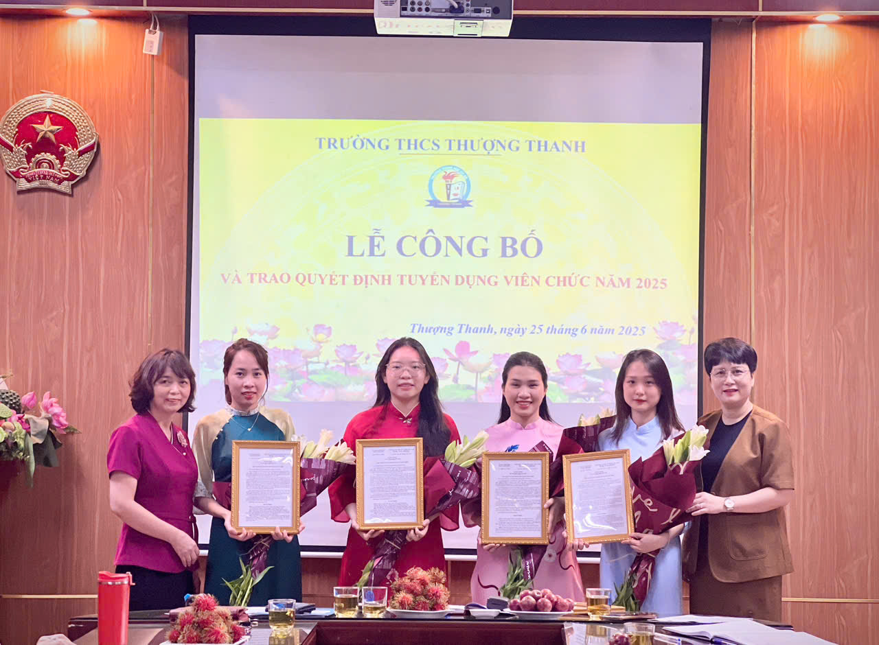 Ban giám hiệu nhà trường đã trực tiếp trao quyết định phân công công tác và gửi lời chúc mừng đến các thầy cô giáo trong bước khởi đầu sự nghiệp giảng dạy tại mái trường THCS Thượng Thanh.