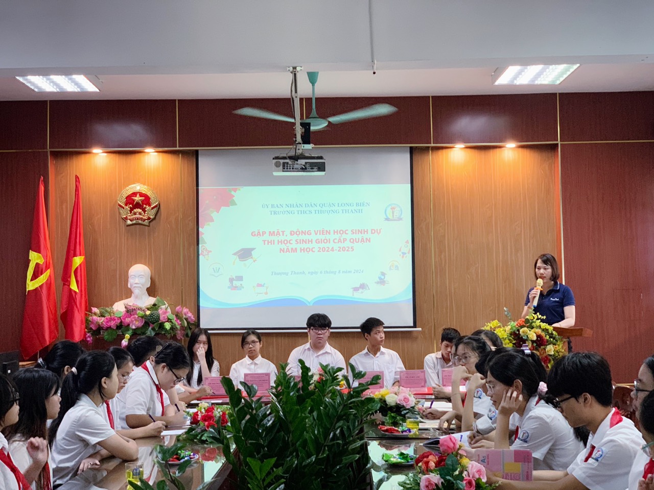 Để cổ vũ tinh thần cho các đội tuyển của nhà trường chuẩn bị tham gia thi cấp Quận vào ngày 13/8/2024 sắp tới, Ban Giám hiệu trường THCS Thượng Thanh đã tổ chức một buổi gặp mặt thân mật với toàn thể các bạn học sinh giỏi sáng ngày 6/8/2024.