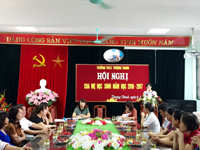 Tại hội nghị, bà Phùng Thị Hà, trưởng Ban đại diện cha mẹ học sinh nhà trường năm học 2015 – 2016 đã báo cáo công tác Hội năm học trước và phương hướng hoạt động của hội cha mẹ học sinh trong năm học mới. Hội nghị cũng nghe ông Nguyễn Đăng Khoa thông qua quyết toán quỹ hội năm học 2015 – 2016 và dự toán chi quỹ hội trong năm học 2016 – 2017. Trong hội nghị đã có nhiều ý kiến phát biểu, đa số đều nhất trí, ghi nhận sự cộng tác, phối hợp chặt chẽ của của Ban đại diện cha mẹ học sinh với nhà trường đồng thời gửi lời cảm ơn sâu sắc tới tập thể các thầy cô giáo nhà trường đã hết lòng tâm huyết, tận tụy trong công tác giáo dục học sinh. Đây cũng là cơ hội để các bậc phụ huynh chia sẻ những kinh nghiệm trong cách giáo dục con cái.