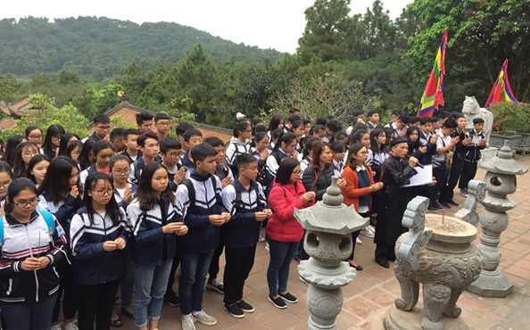 Cô và trò lớp 9A3 trải nghiệm thực tế tại đền thờ thầy Chu Văn An
