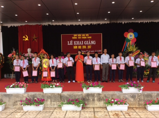 Nhân dịp này, UBND quận Long Biên, UBND phường Thượng Thanh và nhà trường đã tặng 35 suất quà cho những em học sinh thuộc diện hộ nghèo, cận nghèo và có hoàn cảnh khó khăn với trị giá hơn 10 triệu đồng.