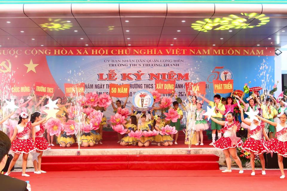 Tại buổi lễ, cô giáo Ngô Hồng Giang- Đảng ủy viên, bí thư chi bộ, hiệu trưởng nhà trường đã ôn lại truyền thống của nhà trường trong suốt 50 năm xây dựng và phát triển qua bài phát biểu. Từ những năm đầu thành lập, nhà trường gặp vô vàn khó khăn về cơ sở vật chất, chỉ có vài lớp học được dựng lên bằng tre, nứa. Nhưng với lòng yêu nghề, yêu trường, thầy và trò trường THCS Thượng Thanh đã đoàn kết, phấn đấu khắc phục mọi khó khăn nâng cao chất lượng dạy và học, giáo dục phát triển năng lực, phẩm chất của học sinh. Nhà trường dần trở thành địa chỉ tin cậy của phụ huynh và nhân dân bởi những thành tích đã đạt được. Đặc biệt năm học 2015 – 2016 nhà trường được UBND thành phố Hà Nội công nhận Tập thể xuất sắc cấp Thành phố.