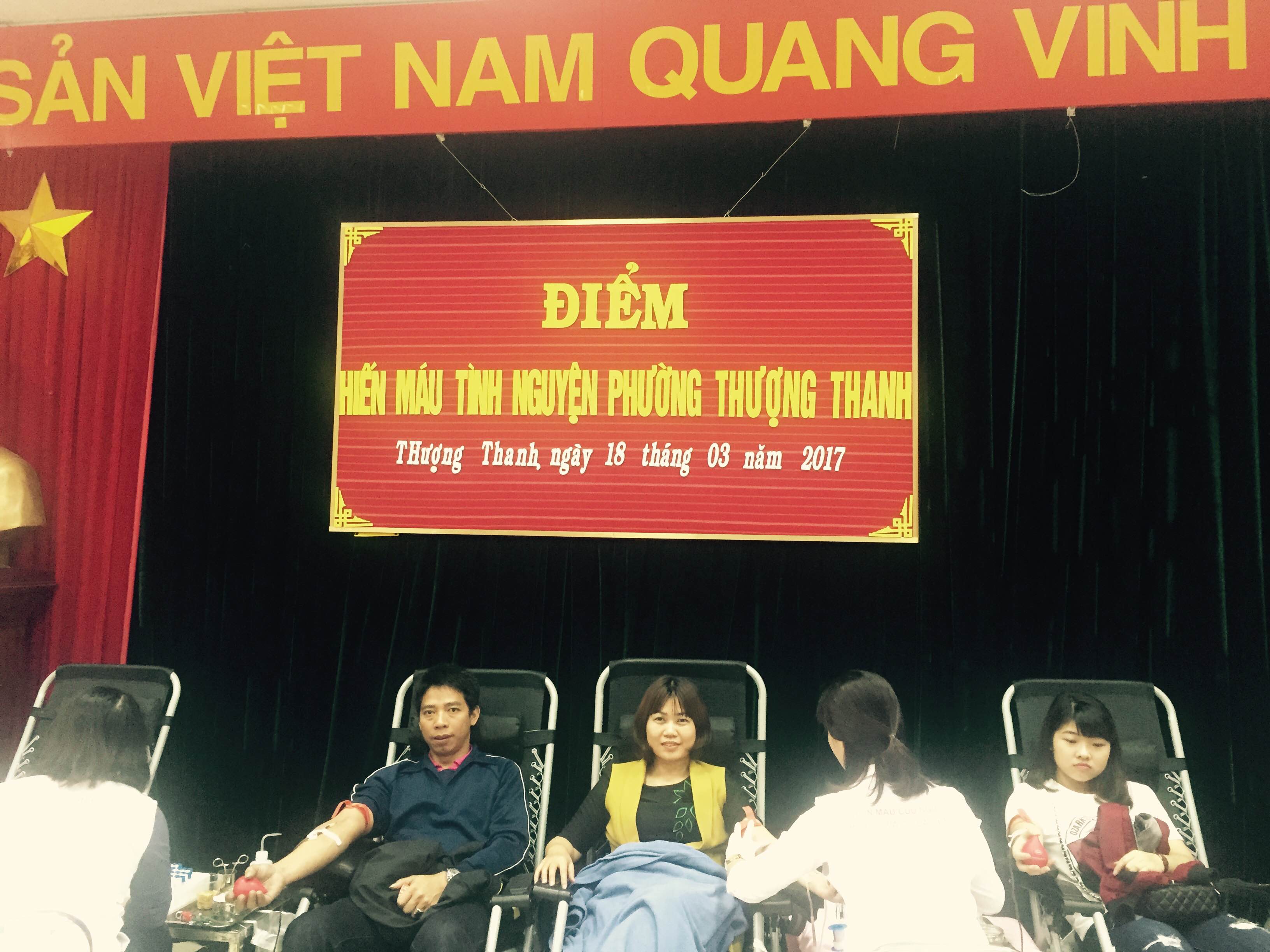 Hiến máu tình nguyện là một hành động cao cả, một nghĩa cử cao đẹp của toàn xã hội. Hàng ngày, hàng giờ, chúng ta vẫn luôn gặp phải những hoàn cảnh rất khó khăn vì không đủ máu kịp thời cung cấp cho những ca cấp cứu. Chỉ cần hiến một phần máu của mình, mỗi chúng ta đã cứu được rất nhiều người trước nguy cơ mất người thân, bạn bè và trước tiên là cứu được tính mạng của chính người bệnh đang cần đến máu. Hiến máu không gây ảnh hưởng đến sức khỏe, thậm chí còn có một số tác dụng tích cực nhất định đối với cơ thể của người hiến máu. Lượng máu đã hiến sẽ được cơ thể nhanh chóng tái tạo phục vụ cho quá trình tuần hoàn. Hiểu được điều đó, ngày 18/3/2017, trường THCS Thượng Thanh đã tích cực tham gia Ngày hội hiến máu tại phường – với sự tham gia của 5 đồng chí: đồng chí Trần Thị Thanh Hà, đồng chí Nguyễn Công Ánh, đồng chí Phạm Thanh Hòa, đồng chí Trịnh Thanh Xuân và đồng chí Trần Thị Trà My. Trường đã hoàn thành vượt mức chỉ tiêu kế hoạch được giao, góp phần hoàn thành nhiệm vụ chính trị của nhà trường, địa phương năm 2017.