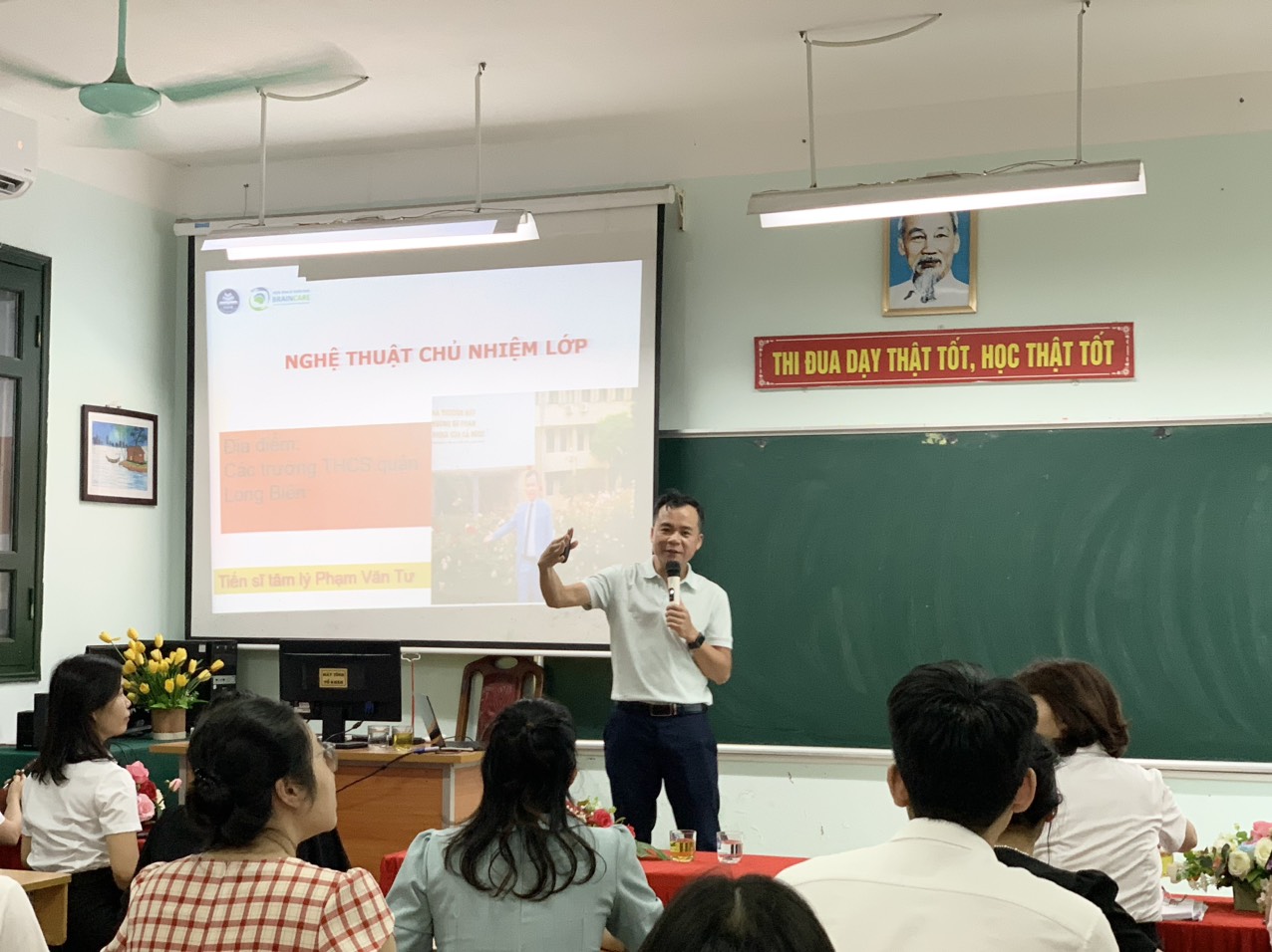 Việc tập huấn công tác chủ nhiệm là việc làm thường niên ở trường THCS Thượng Thanh trước thềm năm học mới. Ngày 9/8/2024, Ban giám hiệu cùng các thầy cô giáo làm công tác chủ nhiệm lớp 6,7,8,9 của ba trường của quận Long Biên (THCS Thượng Thanh, THCS Nguyễn Gia Thiều, THCS Phúc Lợi) đã được tham gia buổi tập huấn về “Công tác giáo viên chủ nhiệm lớp, ứng xử sư phạm của người giáo viên” tại trường THCS Thượng Thanh dưới sự chia sẻ, giải đáp những thắc mắc trong công tác chủ nhiệm của Tiến sỹ Tâm lý học- Thầy giáo Phạm Ngọc Tư.