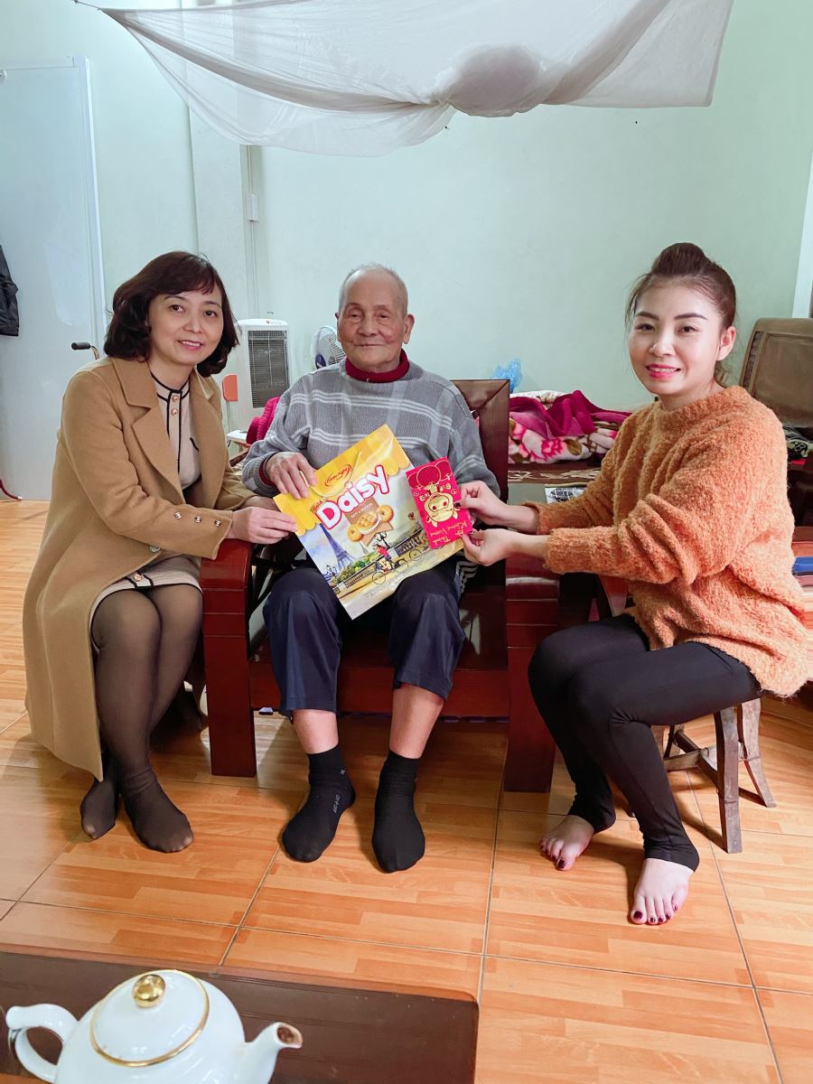 Ngay trong ngày làm việc đầu năm, đồng chí Trần Thị Ngọc Yến- Bí thư chi bộ- Hiệu trưởng cùng đồng chí Đỗ Thị Thu Hoài- Phó Hiệu trưởng, đồng chí Phạm Thị Thanh Bình- Chủ tịch Công đoàn, đồng chí Phùng Thị Thư- Tổng phụ Trách Liên đội, đồng chí Nguyễn Thị Tố Loan- Phó Chủ tịch Công đoàn đã tổ chức đến thăm gia đình cán bộ đoàn viên có tứ thân phụ mẫu thượng thọ để thăm hỏi, động viên, chúc tết tặng quà. Đoàn đến thăm đã dành những lời thăm hỏi, động viên, chúc các cụ sống lâu, sống khỏe bên con cháu.