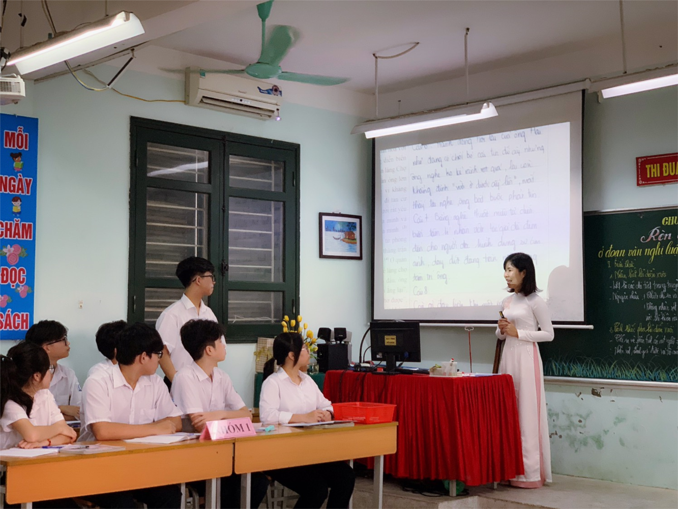 Đây là “phát súng mở màn” cho chuỗi chuyên đề ôn tập các môn Toán, Ngữ văn, Tiếng Anh lớp 9 thường niên của Quận. Cô giáo Nguyễn Thị Nga, đại diện cho nhóm giáo viên Ngữ văn lớp 9 của nhà trường, đã lựa chọn “Rèn cách khắc phục lỗi diễn xuôi ở đoạn văn nghị luận văn học về nhân vật trong tác phẩm truyện.” làm nội dung định hướng ôn tập. Tiết dạy đã khai thác kỹ và sâu một lỗi phổ biến trong bài làm của học sinh khi phân tích nhân vật trong tác phẩm truyện. Các hoạt động triển khai trong giờ học nhẹ nhàng, đa dạng, phù hợp với đối tượng học sinh khá – trung bình. Qua tiết dạy, học sinh được “bỏ túi” những nguyên nhân dẫn tới mắc lỗi diễn xuôi, các bí kíp để khắc phục cách viết thiếu nghệ thuật này đồng thời bước đầu tiếp cận với những cách diễn đạt vừa đúng vừa hay để nâng cao số điểm phần viết đoạn trong các bài thi khảo sát và bài thi vào 10 THPT chính thức sắp tới.