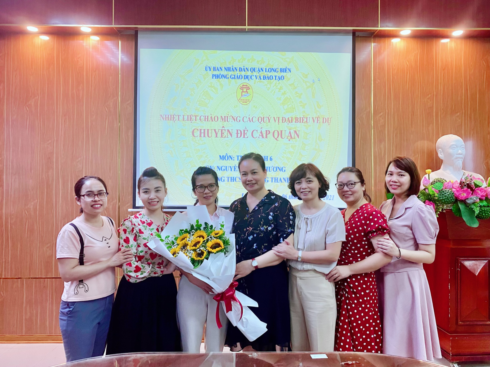 Tham dự chuyên đề cùng nhà trường có đồng chí Lê Hoàng An - chuyên viên Tiếng Anh SGD, đồng chí Đà Giang - chuyên viên Tiếng Anh PGD quận Long Biên, ban giám hiệu nhà trường cùng các đồng chí ban giám hiệu và giáo viên giảng dạy bộ môn Tiếng Anh các trường THCS trong quận.
