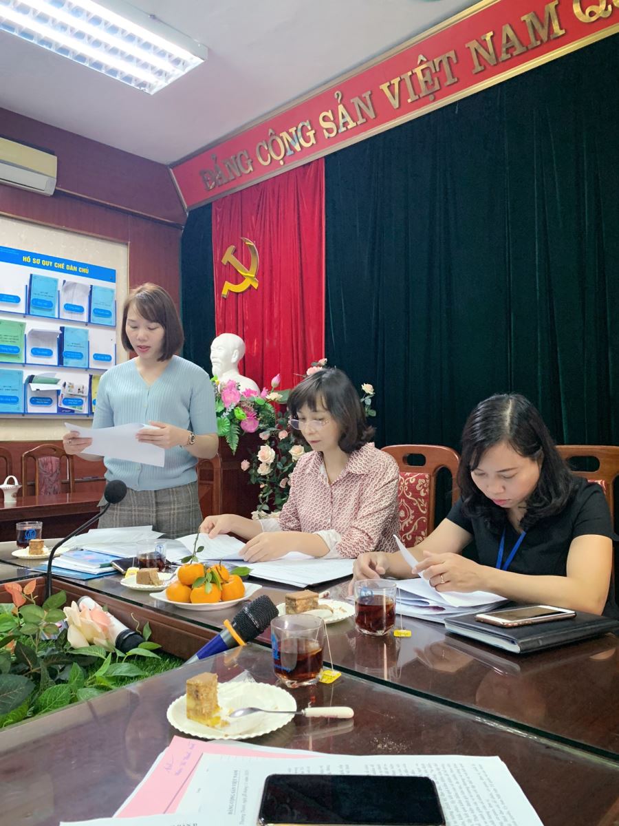 Nội dung tiếp theo của cuộc họp là thông qua phần tự đánh giá chất lượng của Chi bộ, đồng chí Phó bí thư Chi bô đã đọc các tiêu chuẩn, tiêu chí xếp loại 4 mức. Chi bộ đã tiến hành lấy ý kiến thông qua việc bỏ phiếu kín. Kết quả 100% các ý kiến nhất trí với kết quả tự đánh giá chất lượng của Chi bộ là Hoàn thành Xuất sắc nhiệm vụ.
