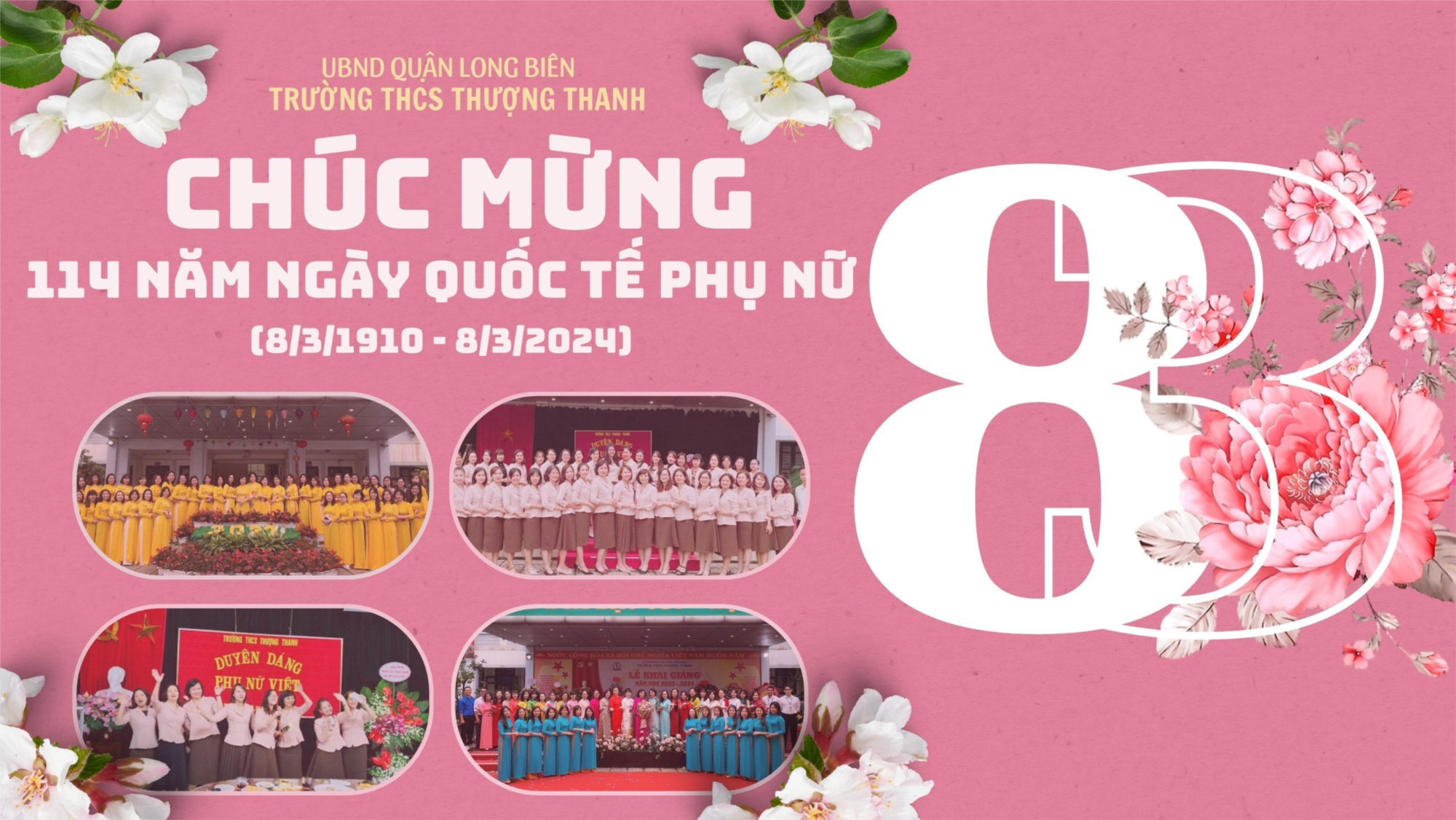 Được sự thống nhất quan tâm, tạo điều kiện của BGH nhà trường, BCH công đoàn nhà trường tổ chức lễ kỉ niệm 114 năm ngày Quốc tế phụ nữ 8/3, 1984 năm khởi nghĩa Hai Bà Trưng. Mở đầu chương trình, đồng chí Nguyễn Ngọc Hùng – nhân viên bảo vệ hát tặng toàn thể HĐSP ca khúc “Mùa xuân đầu tiên”. Tiếp đó, đồng chí Đặng Quang Thắng cùng các đồng chí nữ công đoàn viên biểu diễn tiết mục “Em xinh”. Sau các tiết mục văn nghệ, tập thể giáo viên nhân viên nam nhà trường gửi đến toàn thể nữ cán bộ, giáo viên, nhân viên lời chúc mừng tốt đẹp nhất.