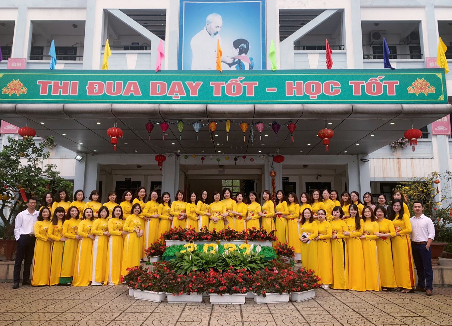 Đồng chí Phạm Thị Thanh bình- Chủ tịch Công đoàn đã có bài phát biểu ghi nhận những đóng góp của cán bộ, công nhân viên nữ trong nhà trường và đọc quyết định khen thưởng danh hiệu “Giỏi việc trường đảm việc nhà” cho 15 đồng chí đã nỗ lực khẳng định vai trò và tài năng trong công việc và trong cuộc sống gia đình. Cũng trong buổi lễ trang trọng và ấm áp này, cán bộ, giáo viên, nhân viên nữ của nhà trường đã hưởng ứng tuần lễ áo dài do Liên đoàn lao động Quận Long Biên phát động. Trong sắc vàng rực rỡ của tà áo dài đồng phục mới, trông ai cũng thật tươi tắn và xinh đẹp.