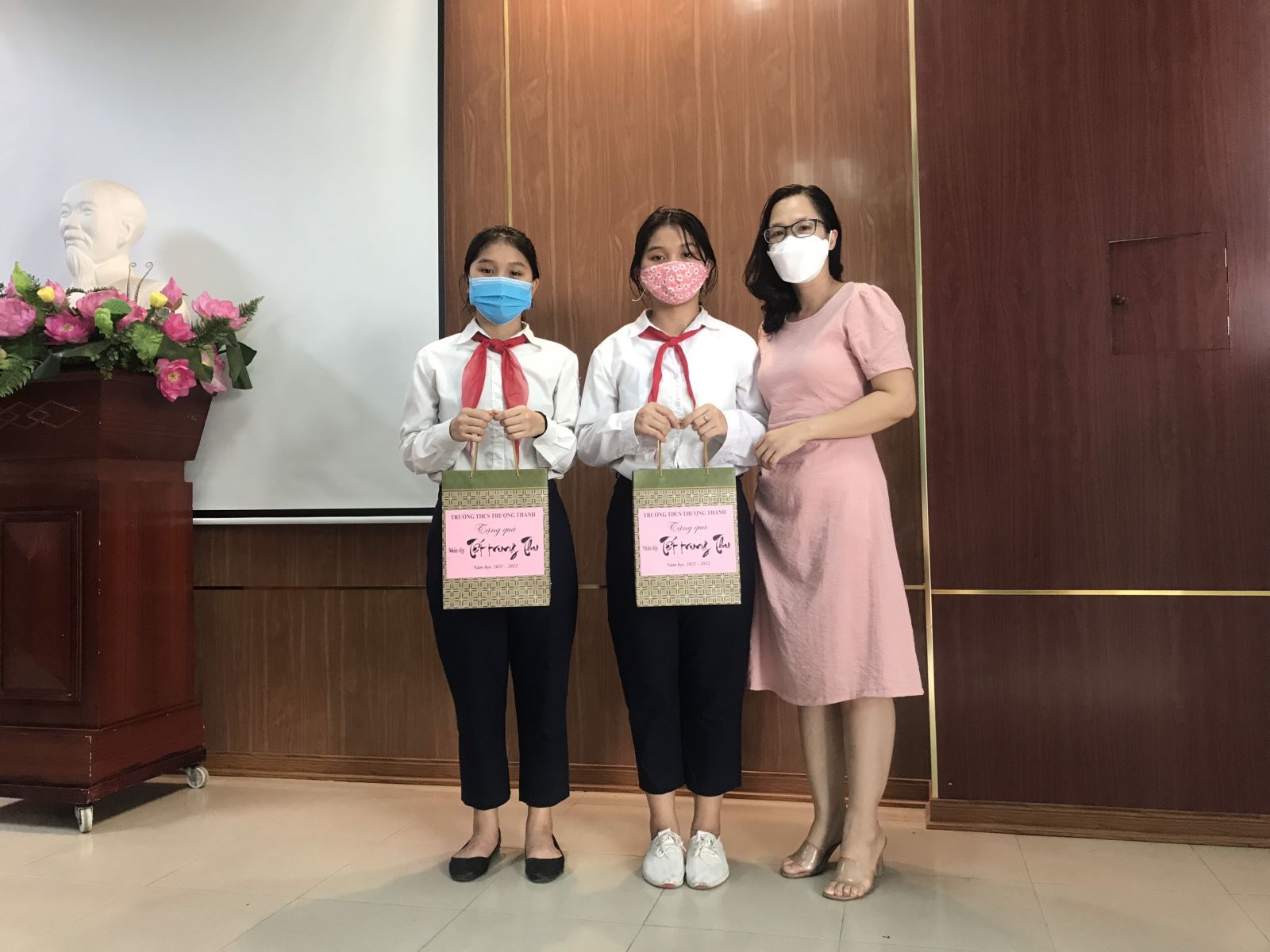 Mọi năm, cứ mỗi dịp Trung thu đến, từ các ngõ ngách thôn quê cho tới các thành phố sầm uất trên khắp đất nước, đều nhộn nhịp trong không khí tổ chức và chuẩn bị Trung thu. Tết Trung thu là tết của tình thân, đoàn tụ và yêu thương, cũng là tết của trẻ em. Đối với các em học sinh, đây cũng là dịp lưu lại những kỉ niệm đáng nhớ cùng gia đình, bè bạn và thầy cô. Do dịch bệnh Covid 19 nên năm nay cô trò trường THCS Thượng Thanh không thể tổ chức lễ hội “Đêm hội Trăng rằm” như mọi năm. Thay vào đó, sáng ngày 20/9/2021 Ban giám hiệu nhà trường và các cô giáo chủ nhiệm các lớp đã đến nhà và tặng quà cho những em học sinh có hoàn cảnh khó khăn. Đây là một hoạt động rất ý nghĩa. Những phần quà nhỏ này thể hiện sự quan tâm của nhà trường trong việc chăm sóc, giáo dục thiếu niên nhi đồng, góp phần động viên, khích lệ các em trong học tập, rèn luyện. Nhà trường tặng 10 phần quà và mỗi phần quà bao gồm một hộp bánh trung thu. Những suất quà tuy có giá trị không lớn nhưng có ý nghĩa thiết thực, góp phần đem Tết Trung thu bổ ích, ý nghĩa đến các em thiếu niên, nhi đồng.
