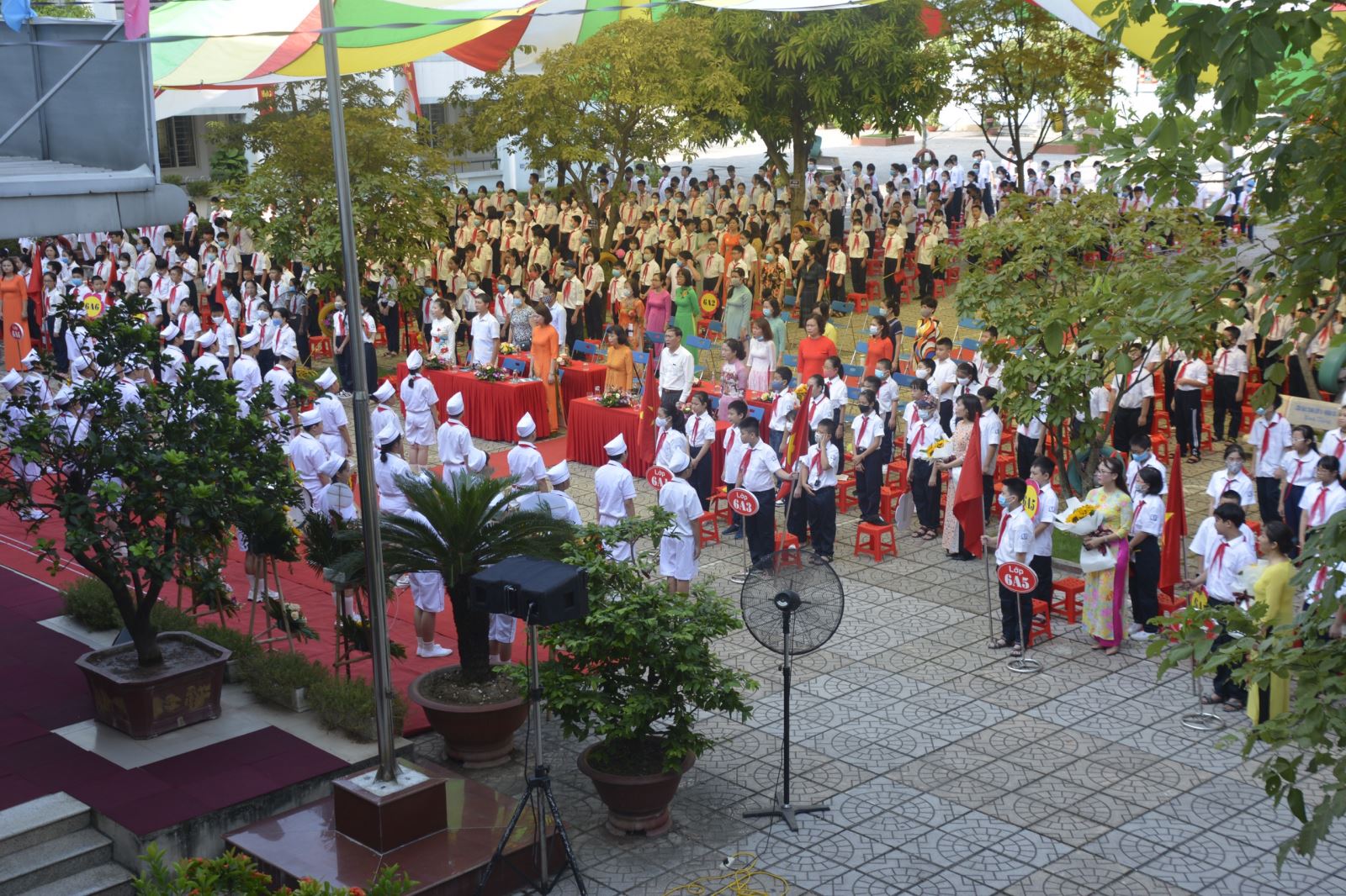 Để giúp các em phấn khởi, hân hoan trong ngày đầu tiên đến trường BGH nhà trường đã chỉ đạo và phối hợp với các thầy cô giáo nhà trường tổ chức một buổi tựu trường đáng nhớ đồng thời đảm bảo an toàn tuyệt đối cho các em học sinh trong tình hình dịch bệnh Covid-19 còn diễn biến phức tạp. Các thầy cô giáo trong chi đoàn nhà trường đã đến rất sớm đứng ở cổng trường để đo thân nhiệt, hướng dẫn học sinh sát khuẩn tay và đưa các em về vị trí lớp của mình. Mỗi lớp đều sắp xếp các hàng ghế ngay ngắn, đảm bảo độ giãn cách khi ngồi tập trung dưới sân trường.