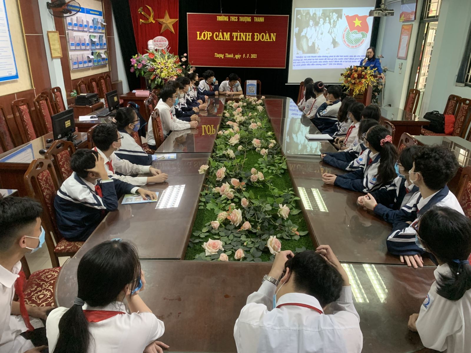 Để chuẩn bị cho ngày Kết nạp Đoàn viên mới, trường THCS Thượng Thanh tổ chức lớp học bồi dưỡng nhận thức về Đoàn cho 32 Đội viên ưu tú khối lớp 9 vào chiều ngày 9/3/2021. Kết nạp Đoàn viên là một trong những nội dung quan trọng của Đoàn trường nhằm tạo điều kiện cho những thiếu niên tiên tiến được hoạt động trong một môi trường tốt để được phát triển cả về trí tuệ và tinh thần. Dưới sự giảng dạy và hướng dẫn nhiệt tình của Phó Bí thư chi đoàn trường- cô Đinh Thị Lụa, các em đã hiểu rõ về những kiến thức cơ bản về Đoàn TNCS Hồ Chí Minh: các biểu trưng của Đoàn, phương hướng phấn đấu để trở thành Đoàn viên của Đoàn TNCS Hồ Chí Minh… Bên cạnh đó, các em còn được lắng nghe những lời chia sẻ của đàn anh đi trước cũng như tâm sự với cô giáo về những băn khoăn trong cuộc sống.