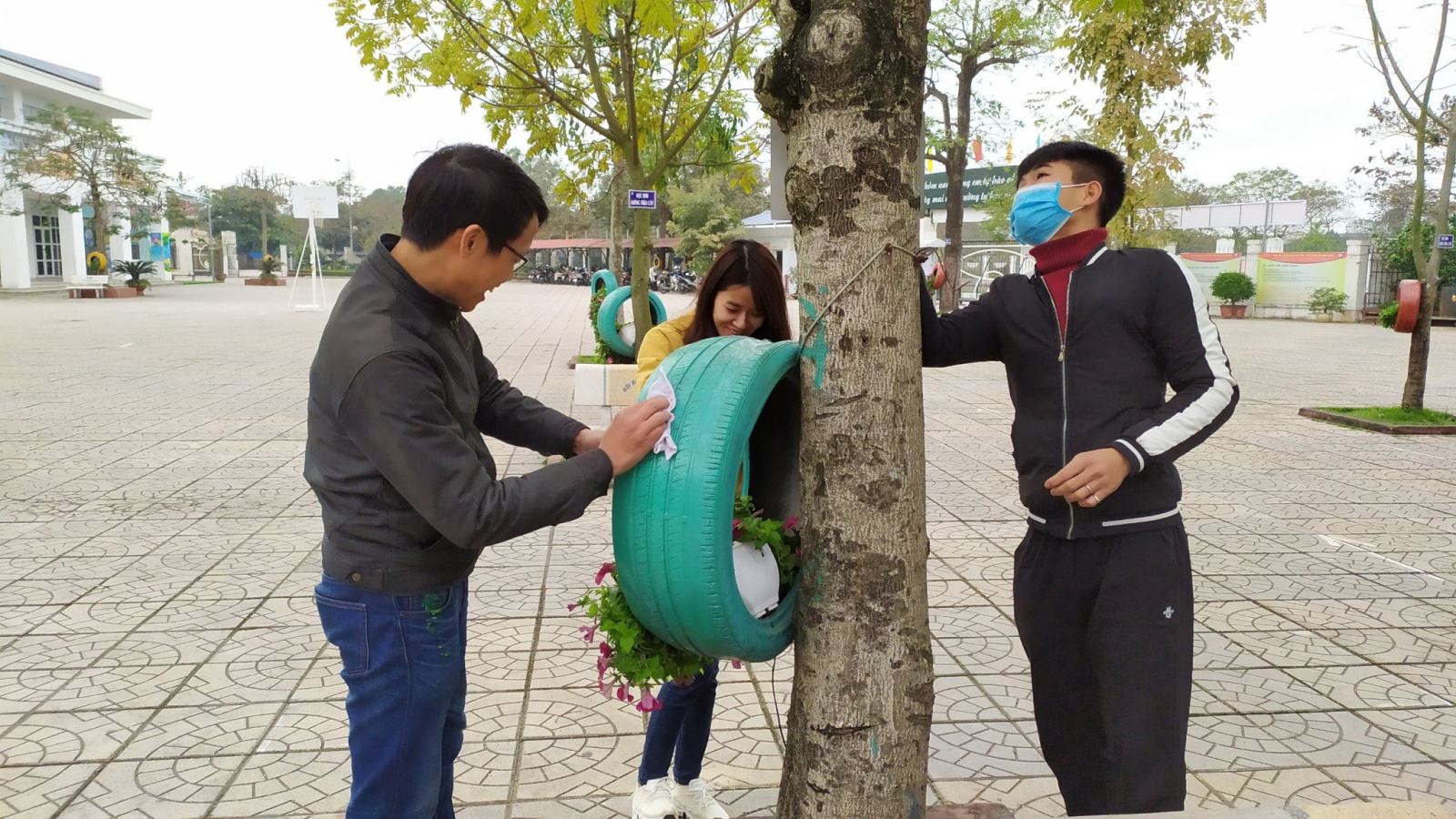 Với tinh thần “ Đâu cần thanh niên có, đâu khó có thanh niên”, chi đoàn giáo viên nhà trường đã tích cực tham gia công tác vệ sinh môi trường. Các đồng chí đoàn viên chi đoàn chú ý vệ sinh sạch sẽ các lốp xe trồng hoa quanh sân trường. Công việc này được chi đoàn nhà trường thực hiện thường xuyên nhằm hạn chế môi trường sinh sôi của muỗi gây ra bệnh sốt xuất huyết. Đặc biệt trong thời gian này, trước những diễn biến phức tạp của dịch bệnh viêm đường hô hấp cấp do chủng mới của virus Corona, BGH đã chỉ đạo chi đoàn cho đổ cát vào khoảng trống trong lốp xe để loại bỏ hoàn toàn môi trường đọng nước, không cho dịch bệnh sinh sôi.