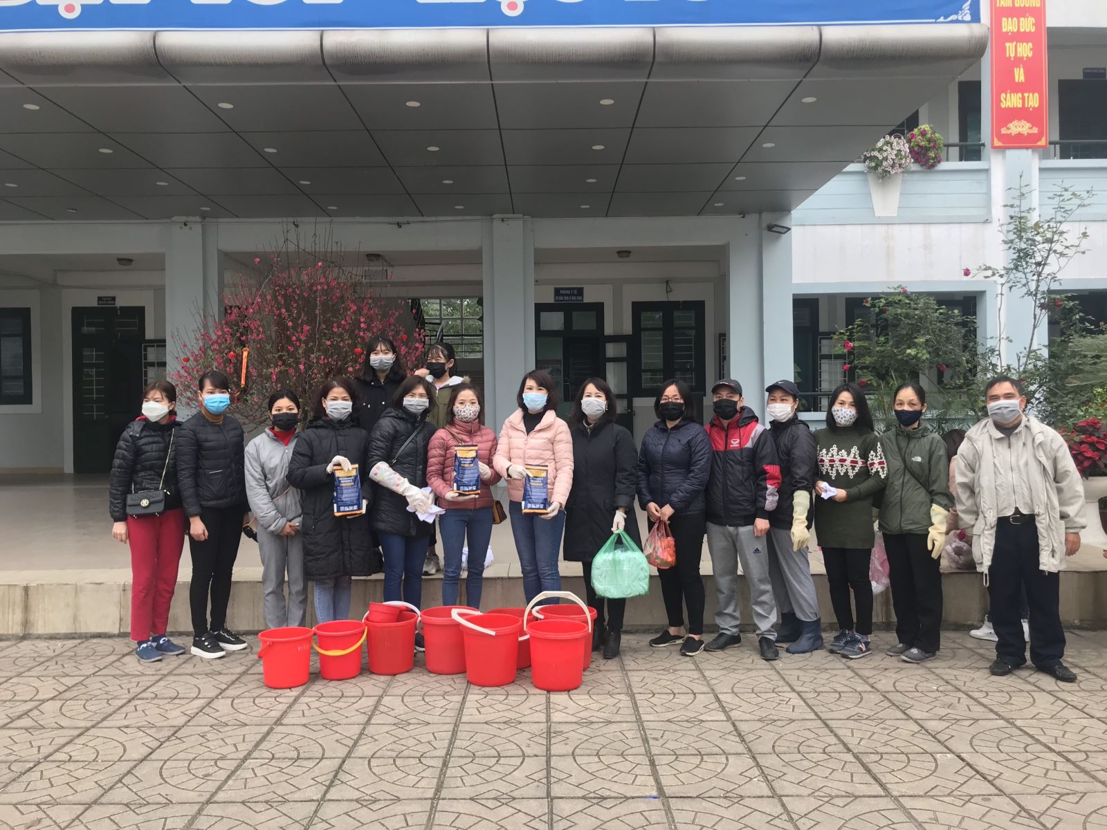 - Bước 1: Tổng vệ sinh môi trường, thu gom rác thải, phế liệu toàn bộ các khu vực trong trường trước khi tiến hành khử khuẩn.( Đã tiến hành vào sáng thứ 7)