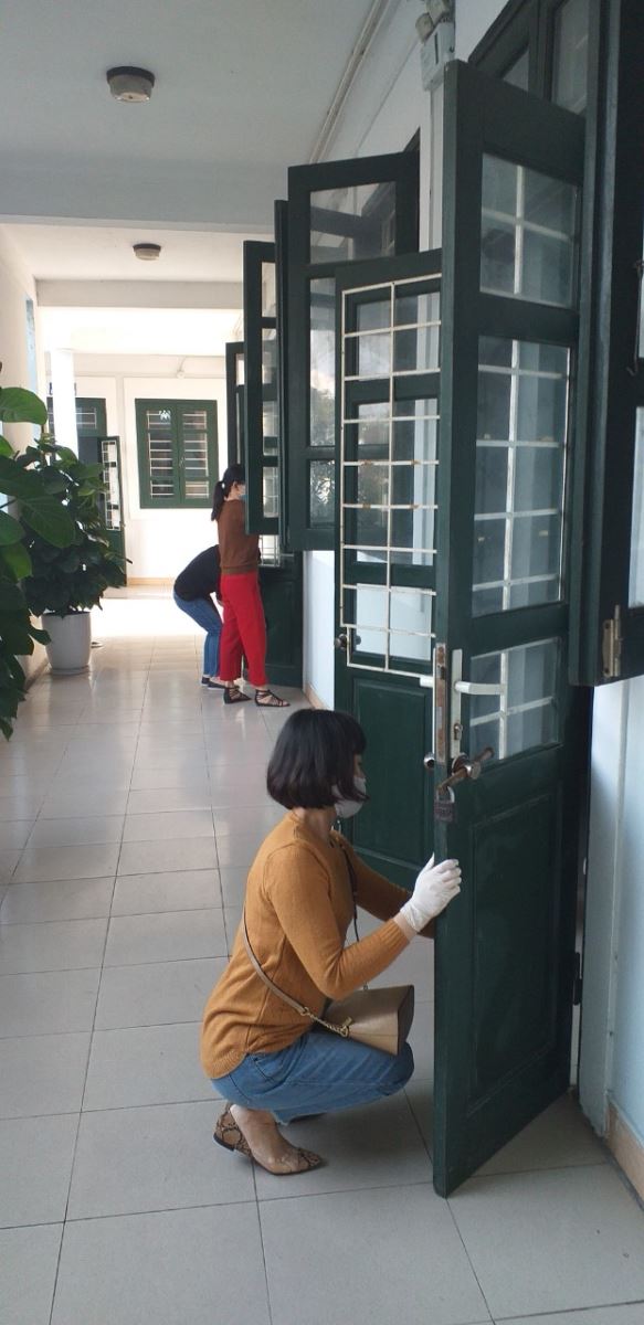 Việc phòng chống dịch đã được nhà trường chủ động đối phó. Nhà trường đã tiến hành khảo sát và phối hợp trung tâm y tế quận Long Biên đến hướng dẫn kiểm tra giám sát việc thực hiện phun thuốc khử khuẩn, lau chùi vệ sinh phòng lớp học. Mặt khác, nhà trường cũng chủ động trang bị khẩu trang cho các cô giáo, dụng cụ đo nhiệt độ. Đặc biệt, việc lau rửa phòng học bằng dung dịch chloramine B cũng được thường xuyên tiến hành".